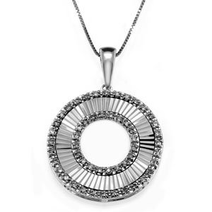 Buy 14k White Gold & Diamond Circle Disc Pendant with Chain (0.33 ctw) Now!!